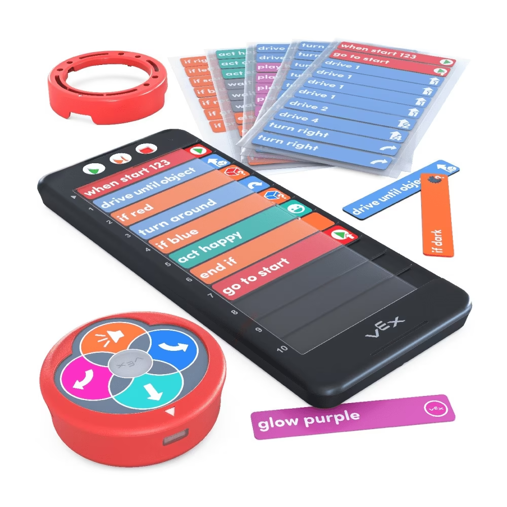 VEX 123 Coder Cards sử dụng ngôn ngữ lập trình trực quan để dạy trẻ em về các khái niệm lập trình đơn giản như di chuyển, vòng lặp và điều kiện.