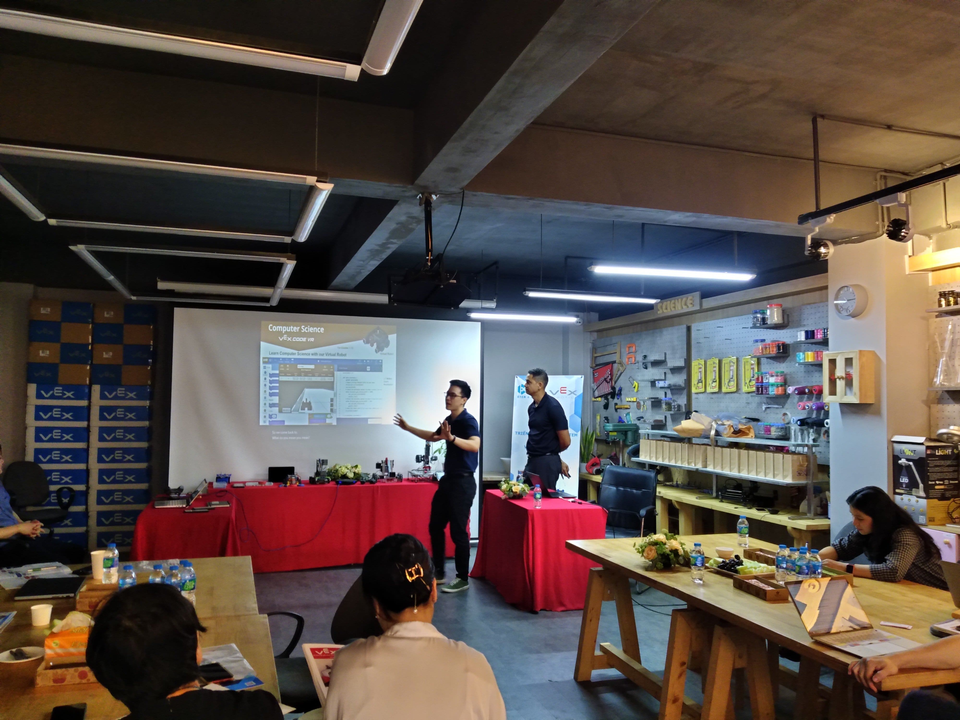 Hình ảnh: Hội thảo giữa Học viện Kidscode STEM và đại diện của hãng VEX Robotics