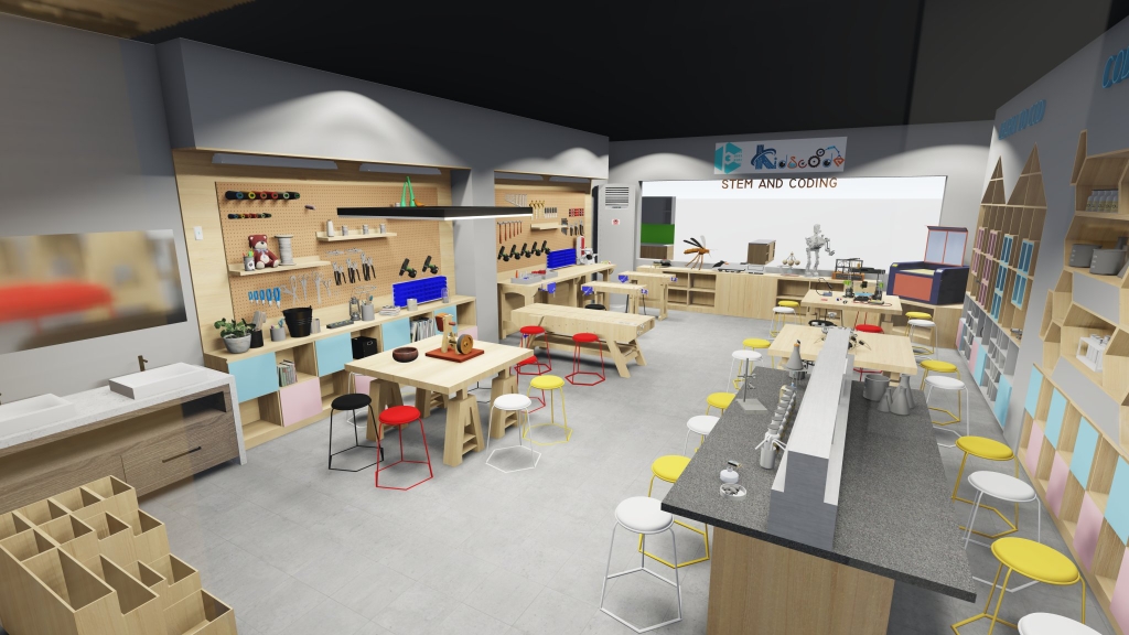 Chính vì thế không gian MakerSpace cho học sinh cần được thiết kế đa dạng với nhiều góc học tập khác nhau và cần nhắm tới việc giúp trẻ phát triển toàn diện trong các lĩnh vực thẩm mỹ, ngôn ngữ, trí tuệ và tình cảm xã hội.