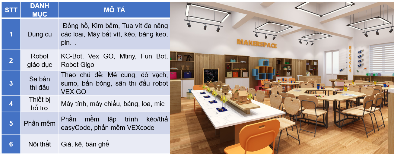 Danh mục thiết bị cung cấp Lab STEM Tiểu học