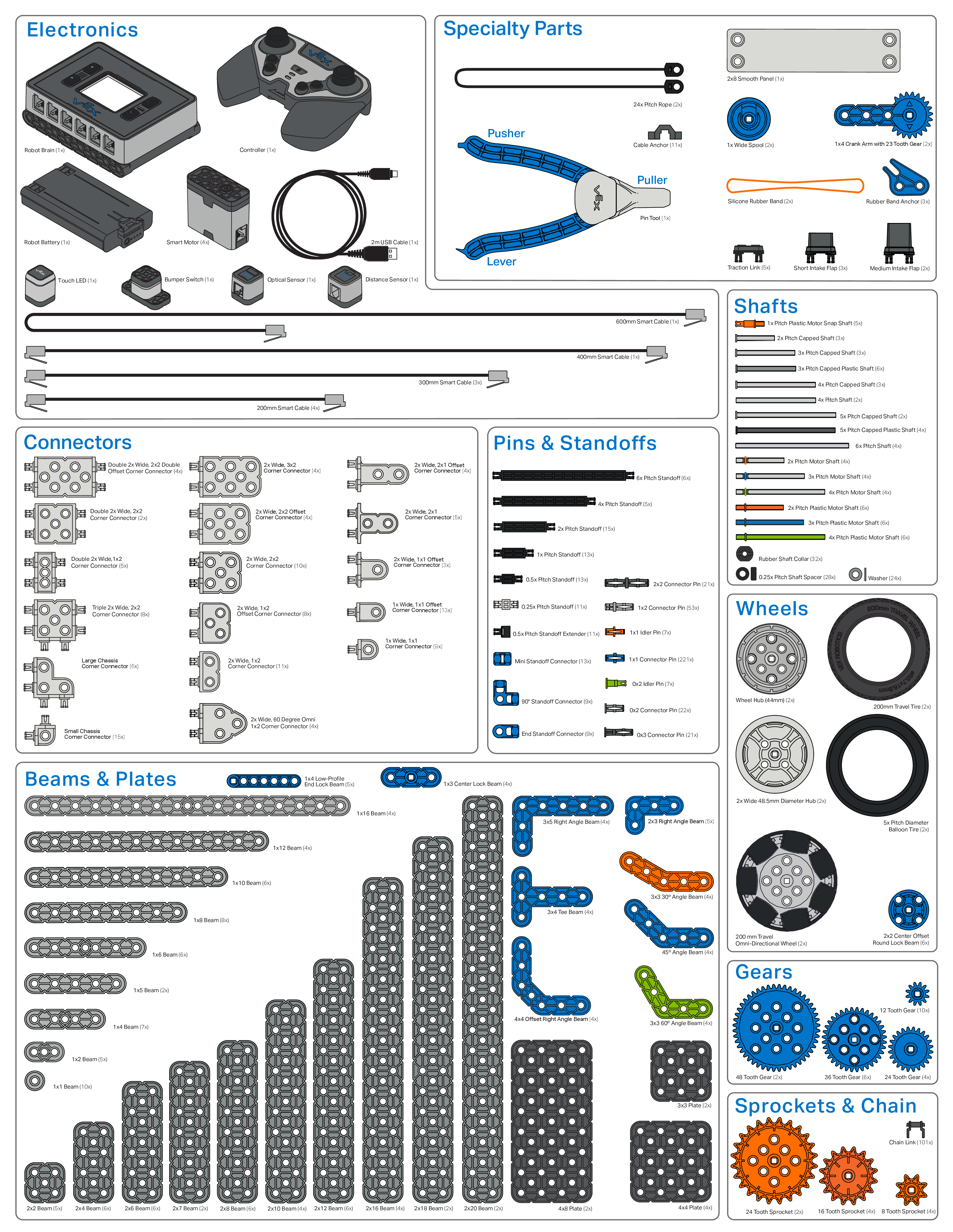 Danh sách linh kiện bộ Robot giáo dục VEX IQ Competition Kit (thế hệ 2):