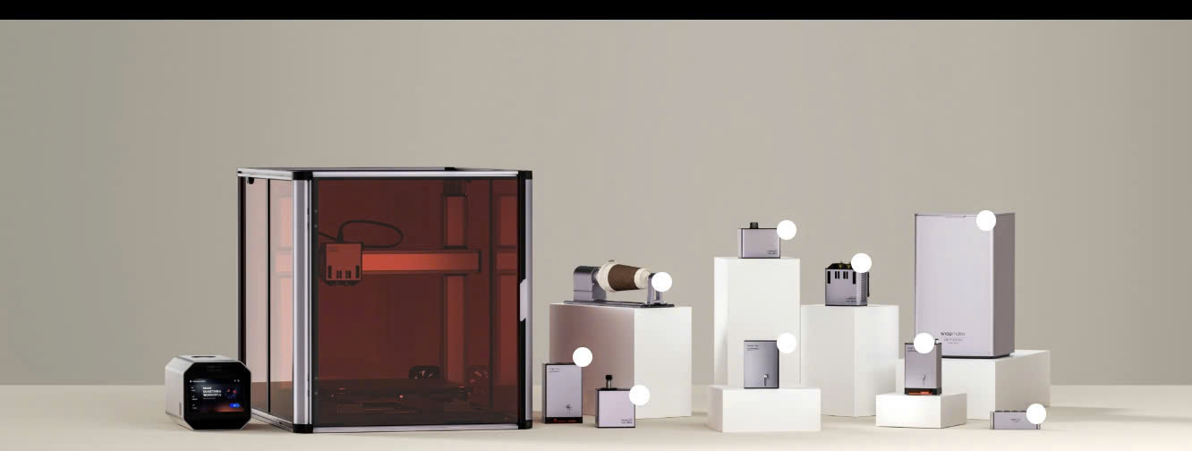 Artisan 3 trong 1 tương thích với hầu hết các mô-đun và tiện ích bổ sung Snapmaker, như Mô-đun Laser 10W / 20W / 40W, Mô-đun Laser hồng ngoại 1064nm, Mô-đun quay, Máy lọc không khí, Trung tâm CAN, v.v. Hãy đến khám phá một thế giới rộng lớn hơn với nhiều khả năng!