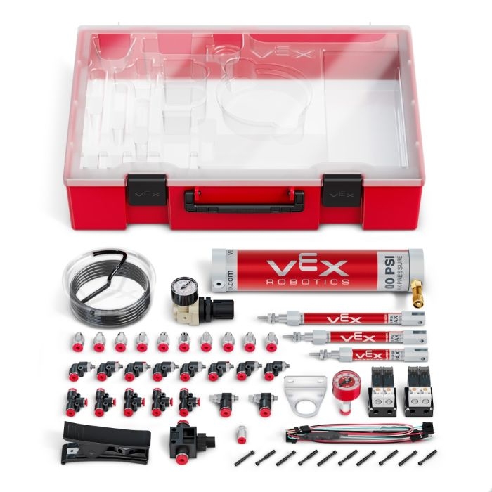 Thiết kế đầy đủ các linh kiện khí nén, giúp mở rộng tính năng cho robot VEX V5 với động tác tuyến tính nhanh và mạnh — phù hợp cho các chức năng đóng/mở, nâng/hạ.